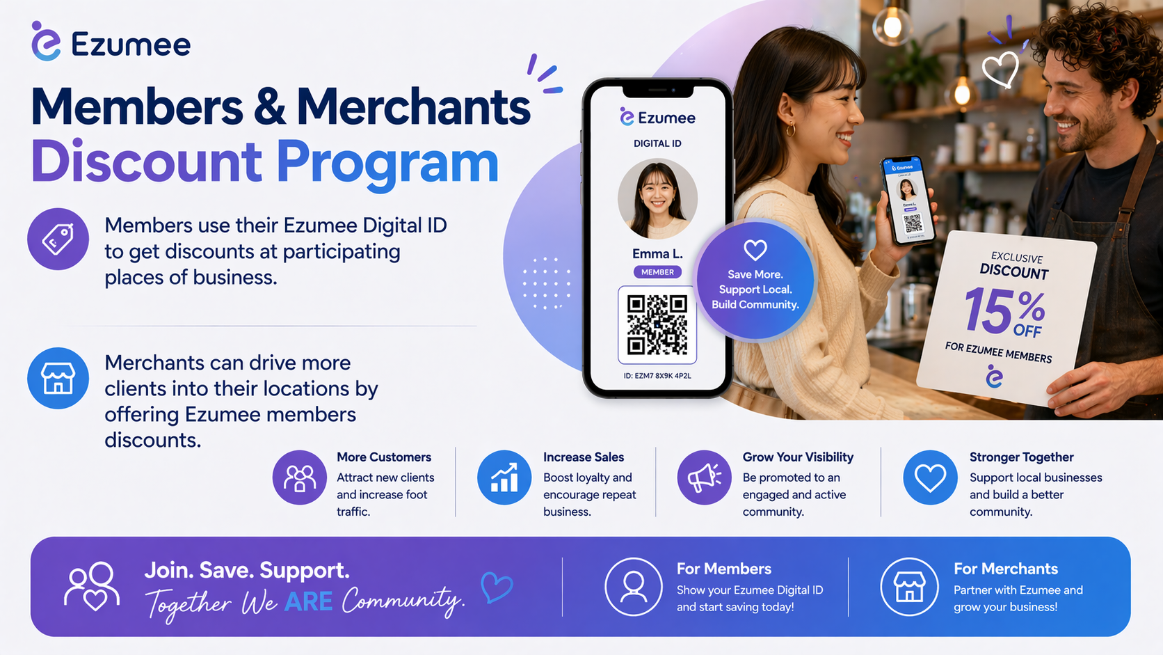 Show your ID to participating merchants. Top Left menue, scroll down to My Digital ID Card. Your Ezumee